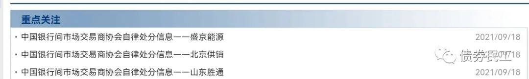 (2)根據中國銀行間市市場交易商協會2021年9月18日披露的信息2,交易商協會對沈陽盛京能源發展集團有限公司、北京供銷社投資管理中心和山東勝通集團股份有限公司等3家債券發行人因信息披露存在問題,被處以自律處分。