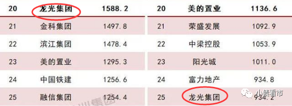 據克而瑞數據,2021年龍光集團以1588.2億操盤金額在房企中排第20位;以934.2萬平方米操盤面積位居第25名,屬于TOP20大中型房企。