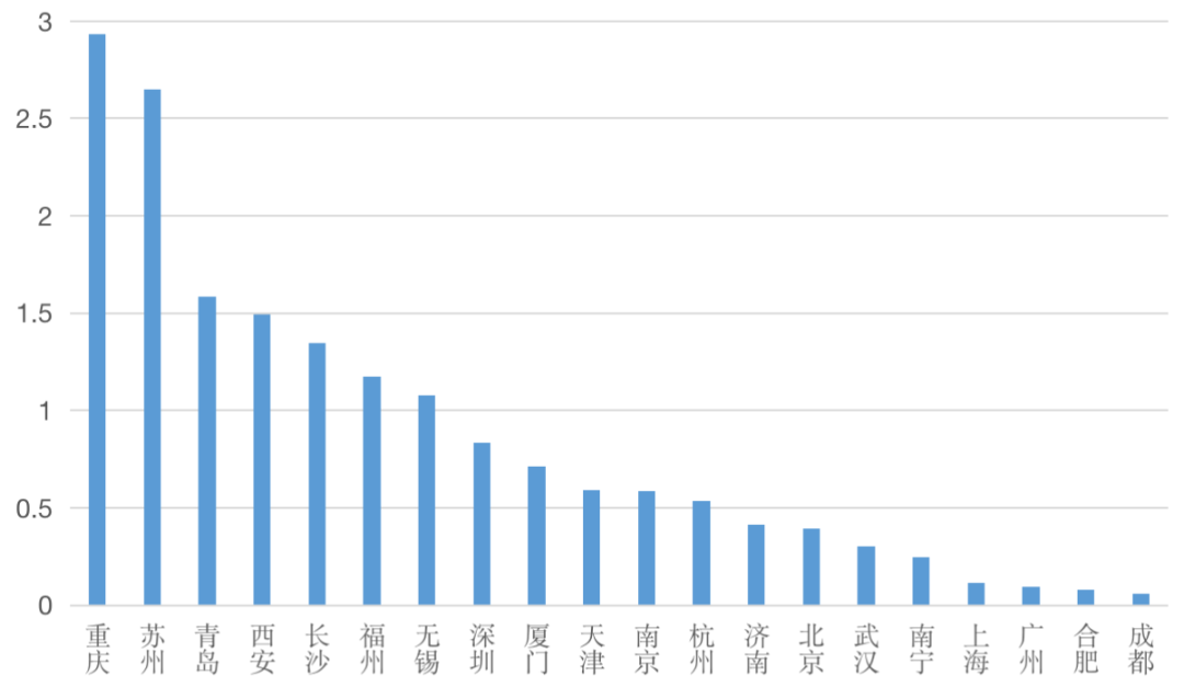 圖:重點(diǎn)20城住宅平均物業(yè)費(fèi)