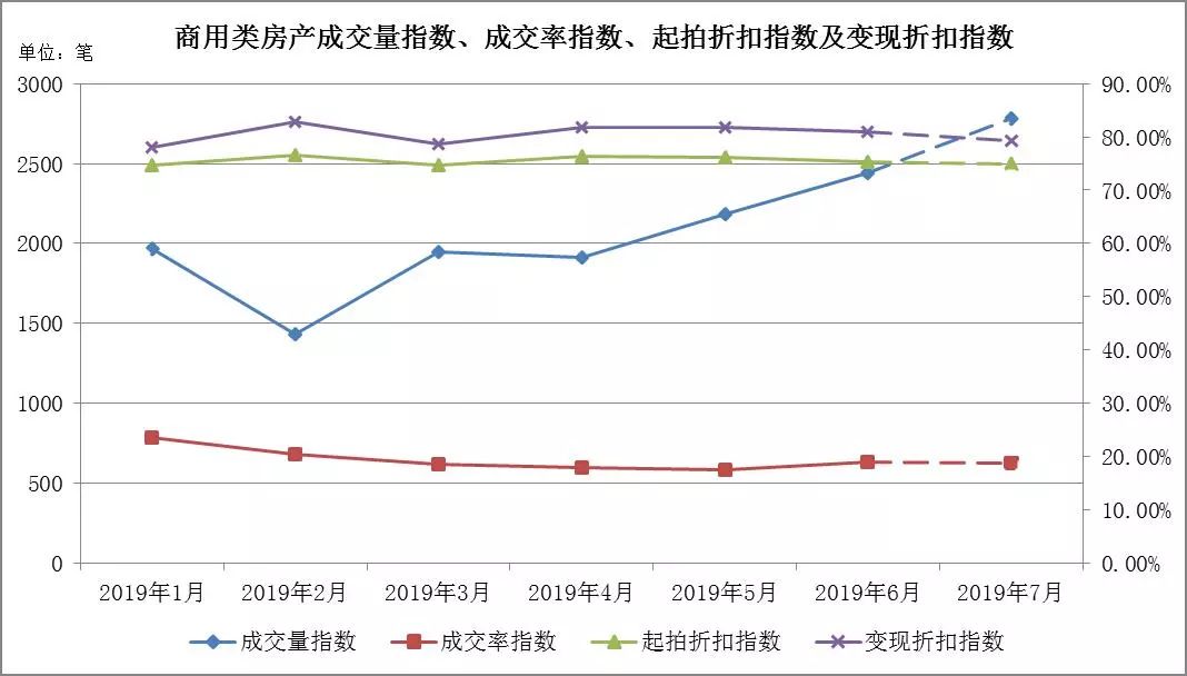 (一) 商用類房產:成交量持續上升,成交率小幅增長,起拍折扣指數、變現折扣指數保持平穩