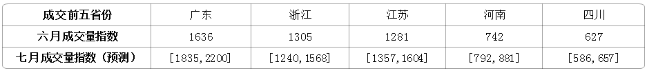 (一)  成交量指數:廣東、浙江、江蘇穩居前三,四川省進入前五