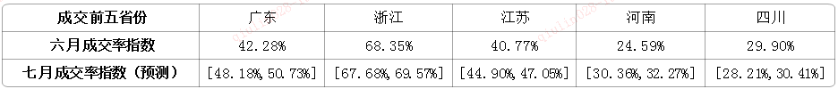 (二)  成交率指數:前五省成交率均明顯下降