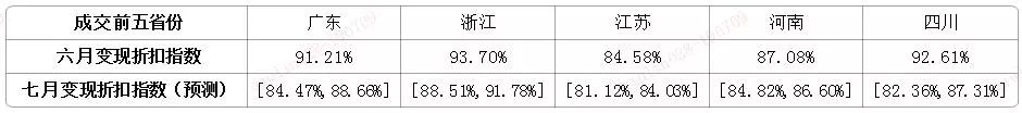 (四) 變現折扣指數:前五省變現折扣指數顯著下降,廣東省降幅最大