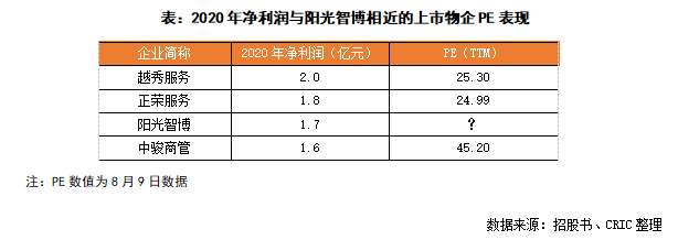 而2020年末陽光智博的凈利潤1.73億元,略高于目前港股上市物企中的中駿商管,低于越秀服務(wù)。綜合考慮其業(yè)態(tài)特性及凈利潤表現(xiàn),假使陽光智博獨立上市,按照25倍PE,預(yù)計市值不超過45億元。綜合來看,換股萬物云5%股權(quán)的市值潛力較陽光智博單獨上市提升約233%。