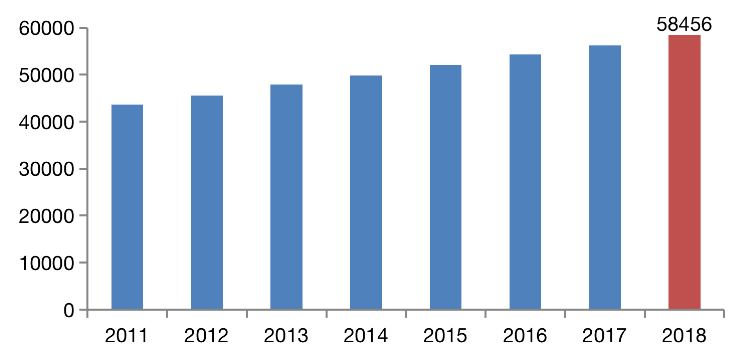 圖:2011-2018年全國城市建成區面積(平方公里)