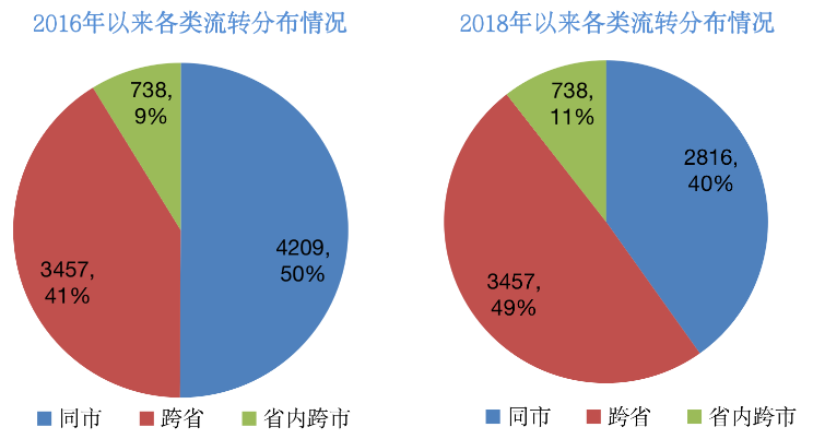 以山東為例,自2016年開展增減掛鉤工作以來,有超過半數的流轉土地指標來自于市內,此外省內跨市的占據一成,而跨省流入的則占到四成左右。