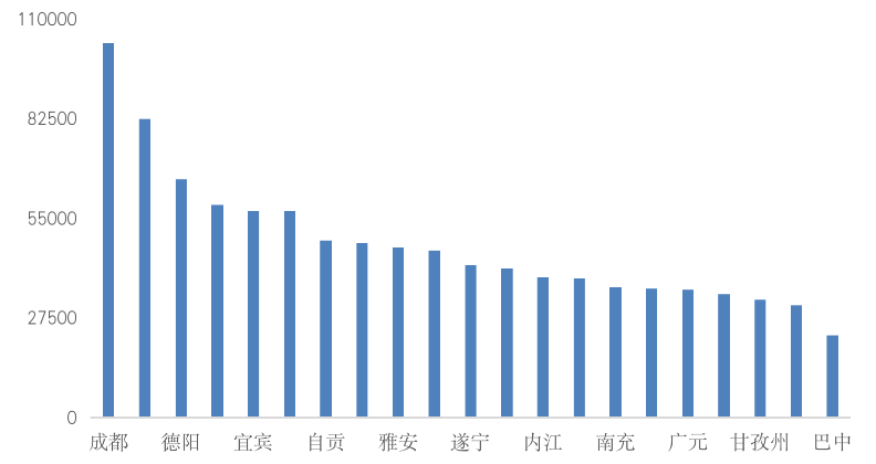 由于四川省內多山地、丘陵,交通極為不便,僅有成都所在的東部區域地勢平緩,這也造成了四川省內經濟發展的不均衡。從各城市2019年常住人口GDP來看,除成都和攀枝花超出全國均值外,其余城市的人均GDP多在5萬元/人之下,其中如巴中的人均GDP在2019年仍不足3萬元/人,省內貧富差異十分顯著。特別是川北及藏區一帶,多個縣市曾是全國的深度貧困區,截止2019年底,全省貧困村還有300個,貧困人口還有20萬,脫貧任務仍比較艱巨。