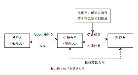 企業(yè)基于自身?yè)碛械膬?yōu)質(zhì)權(quán)益(基礎(chǔ)資產(chǎn)的權(quán)利無(wú)瑕疵并且現(xiàn)金流穩(wěn)定可控)與信托公司合作,通常采用“權(quán)益轉(zhuǎn)讓附加回購(gòu)”等方式,從而實(shí)現(xiàn)優(yōu)質(zhì)資源整合放大的信托融資模式