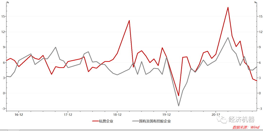 圖2、工業(yè)增加值:國有企業(yè)和私營企業(yè)