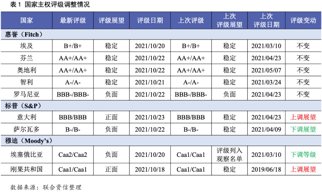10月23日,標普維持意大利長期本、外幣主權信用級別為“BBB”不變,評級展望由“穩(wěn)定”上調至“正面”。標普認為,德拉吉政府當前在意大利議院中占據多數(shù)席位的優(yōu)勢將確保“國家恢復和復原計劃”(PNRR)計劃在2021年底之前都能順利推進,PNRR的實施將有助于意大利經濟的增長緩和其財政的整頓。標普同時也提到,意大利國內已經實現(xiàn)了80%的疫情接種率,疊加其已經收到第一筆復蘇基金;在此基礎上,意大利將在2021年和2022年實現(xiàn)經濟的快速復蘇,GDP增幅將提前1年恢復至2019年的水平。疫苗接種率的提高、私人儲蓄的增加、商業(yè)和家庭信心的增加、歐盟復蘇基金的到位和旅游業(yè)的逐步恢復都將驅動未來意大利經濟的穩(wěn)步上揚。因此,標普上調意大利評級展望至“正面”。