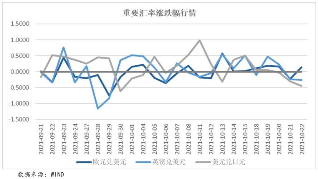 本周,在高通脹壓力以及美元受到打壓的背景下,歐元暫時保持升勢。本周歐元兌美元收于1.1642,周內累計收漲0.34%。英國10月綜合PMI數(shù)據繼續(xù)上行,達到5月以來的最高位,企業(yè)復蘇勢頭強勁,支撐英鎊表現(xiàn)。本周英鎊兌美元收于1.3758,周內累計收漲0.03%。本周,美元兌日元收于113.5000,周內累計收跌0.66%。