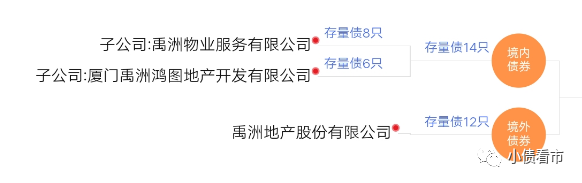 除此之外,禹洲地產還存續境內債14只,發債主體主要是旗下子公司禹洲物業和禹洲鴻圖地產。