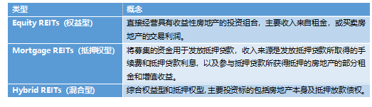 美國市場主要有Equity REITs(權益型)、Mortgage REITs(抵押權型)和Hybrid REITs(混合型)三種基本形態,上市REITs主要以Equity REITs為主。