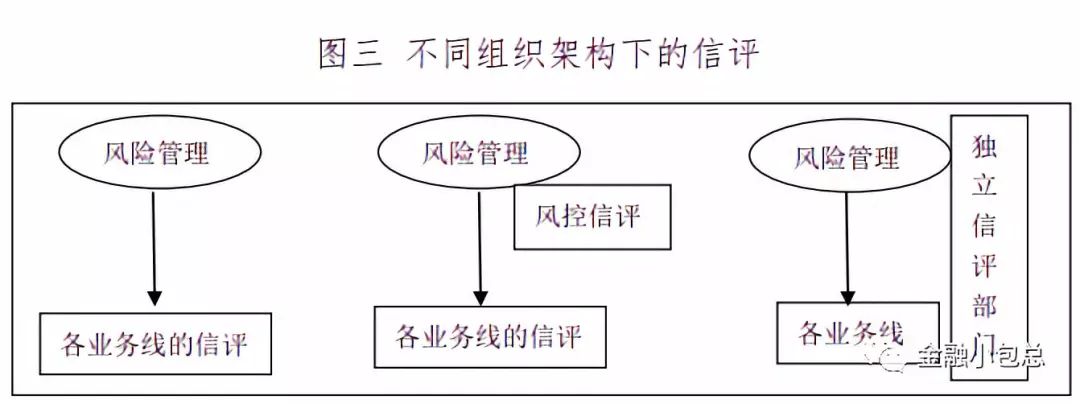 組織架構(gòu)獨立信審模式之下,可以在全公司層面的信用風(fēng)險管理委員會或者投資決策委員會下面下設(shè)獨立的信評部門,負(fù)責(zé)所有信用風(fēng)險敞口業(yè)務(wù)的審核和信用研究工作,并向風(fēng)控部報備。