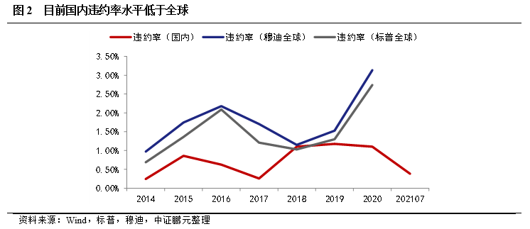 二、國內違約率仍低于全球