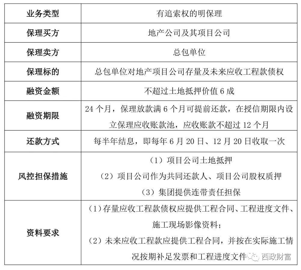 (1)施工方或材料供應(yīng)商將其對(duì)房地產(chǎn)項(xiàng)目公司的應(yīng)收賬款轉(zhuǎn)讓給西政保理;