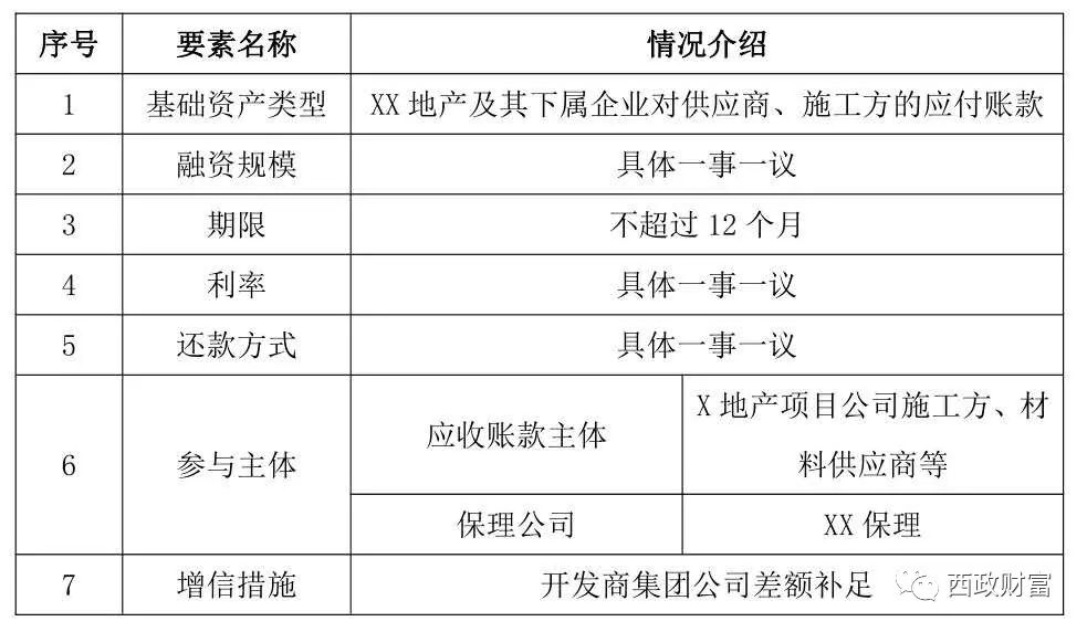 前文有提到,在目前的監(jiān)管環(huán)境下總包單位、材料供應(yīng)商的應(yīng)收賬款融資對(duì)于開(kāi)發(fā)商來(lái)說(shuō)是個(gè)不錯(cuò)的出表融資補(bǔ)充,其中部分外資銀行、城商行對(duì)該類業(yè)務(wù)尤為熱衷,因此值得開(kāi)發(fā)商特別關(guān)注,以下就融資要素進(jìn)行詳細(xì)說(shuō)明。
