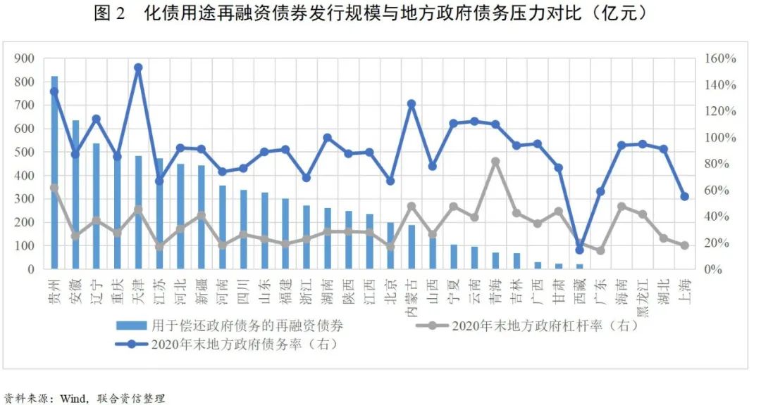 一是地方財(cái)政及金融風(fēng)險(xiǎn)管理壓力較大。一方面,近年來我國實(shí)施大規(guī)模減稅降費(fèi),帶來一些地方財(cái)政減收,而2020年受疫情影響,財(cái)政減收增支壓力進(jìn)一步增加。2020年全國各省一般公共預(yù)算收入增速中位數(shù)為0.1%,增速下滑的省份有14個(gè),地方財(cái)政受到的負(fù)面影響相對較大。另一方面,疫情導(dǎo)致中小銀行信用風(fēng)險(xiǎn)有所暴露,銀行信貸資產(chǎn)質(zhì)量有所下滑,地方平臺(tái)公司作為銀行主要債務(wù)人,債務(wù)風(fēng)險(xiǎn)極易傳導(dǎo)至銀行業(yè),進(jìn)而引發(fā)區(qū)域性金融風(fēng)險(xiǎn),再融資債券助力化債在全國范圍的展開,一定程度上緩解了中小銀行資產(chǎn)端信用風(fēng)險(xiǎn)管理壓力,防范發(fā)生區(qū)域性金融風(fēng)險(xiǎn)。此外,2020年陸續(xù)出現(xiàn)的國有企業(yè)及城投非標(biāo)違約等信用風(fēng)險(xiǎn)事件導(dǎo)致流動(dòng)性風(fēng)險(xiǎn)加大,部分區(qū)域融資環(huán)境受到不利影響。