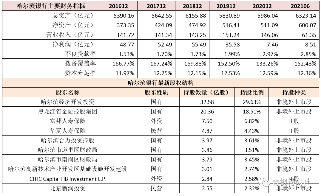 (四)哈爾濱銀行:轉(zhuǎn)向由黑龍江國企控股