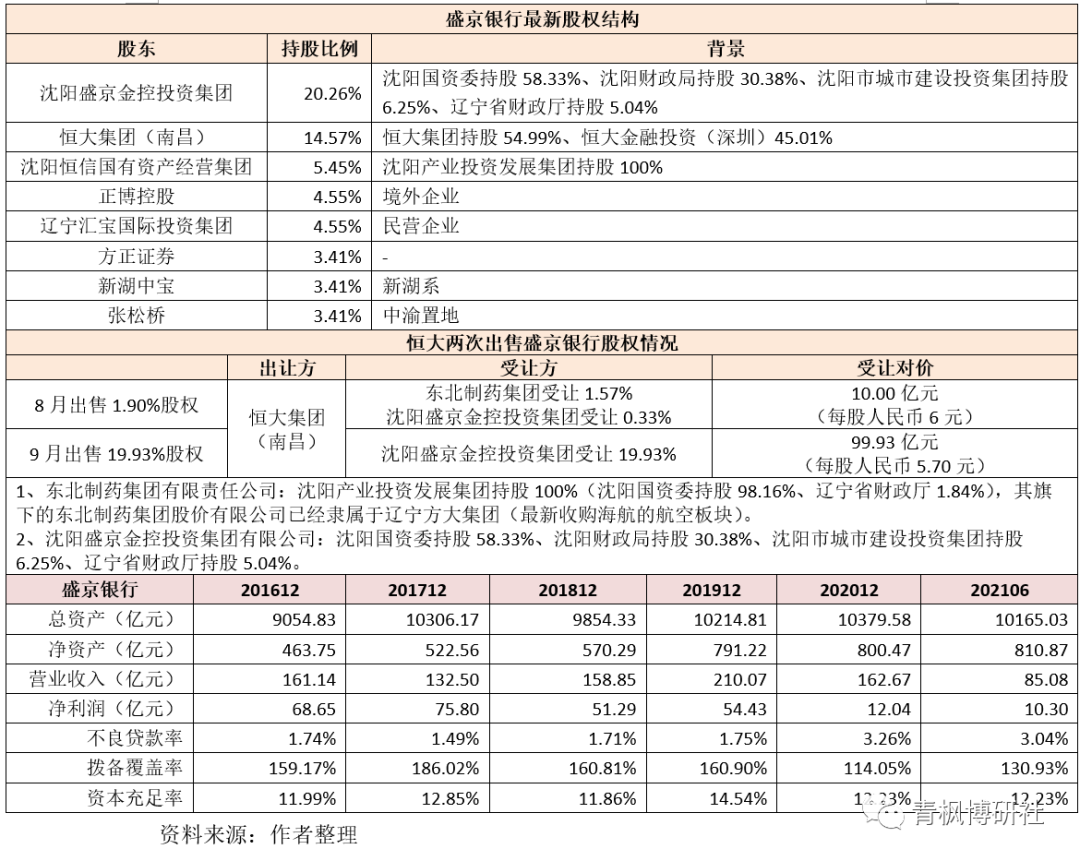 (五)盛京銀行:恒大退出第一大股東序列,當(dāng)?shù)貒Y接盤