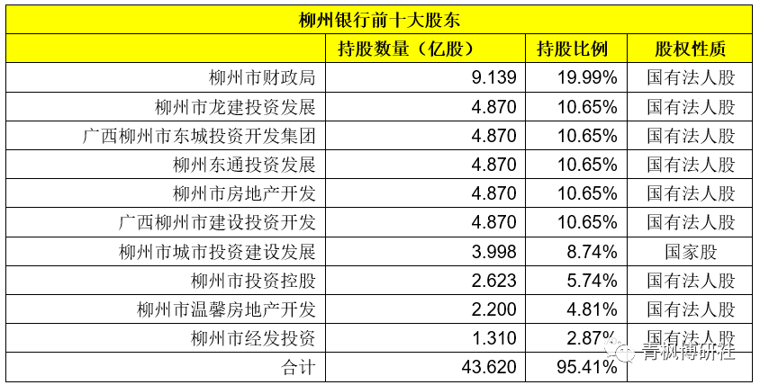 (九)柳州銀行:柳州財政局入主第一大股東,當(dāng)?shù)貒Y持股95%以上