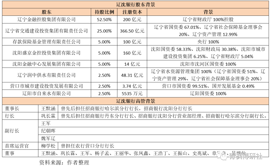 4、新發(fā)起設(shè)立的遼沈銀行注冊資本為200億元人民幣,注冊地址為沈陽,其股東背景主要為沈陽國資委、沈陽財政局、營口國資委、遼陽國資委等,因此遼沈銀行整體是被定位為省級城商行的。