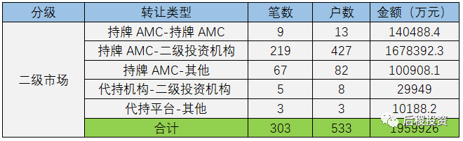 2、二級(jí)投資機(jī)構(gòu)債權(quán)出讓情況