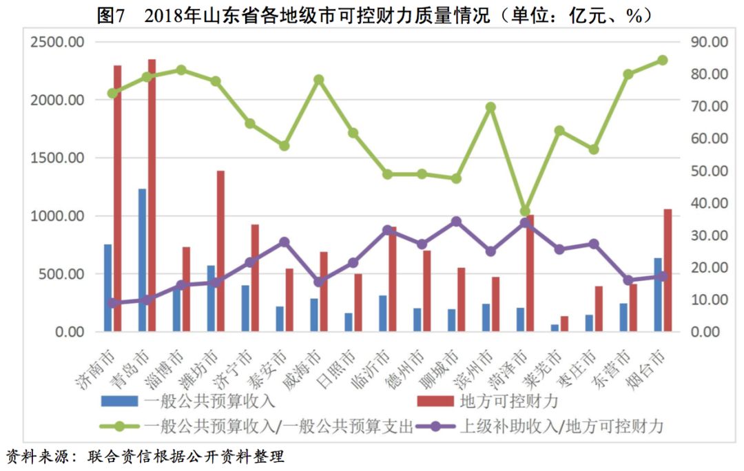 山東省經(jīng)濟(jì)規(guī)模處于全國(guó)上游水平,2018年GDP排名全國(guó)第三,一般公共預(yù)算收入排名全國(guó)前列,政府債務(wù)率處于全國(guó)偏低水平,整體債務(wù)負(fù)擔(dān)輕。山東省各地級(jí)市經(jīng)濟(jì)實(shí)力和財(cái)政收入分化較重,東部沿海城市和省會(huì)濟(jì)南市的經(jīng)濟(jì)規(guī)模和財(cái)政實(shí)力明顯高于其他地級(jí)市。山東省各地級(jí)市一般公共預(yù)算收入質(zhì)量較好,部分地級(jí)市政府債務(wù)負(fù)擔(dān)較重。