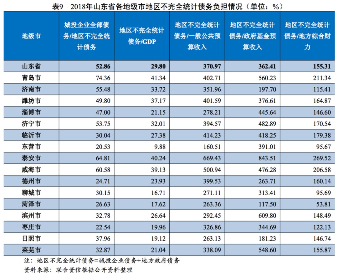 2. 山東省各地級(jí)市財(cái)政收入及政府債務(wù)情況