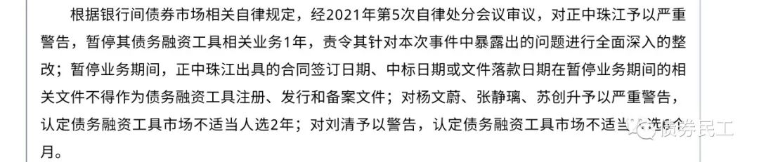 從公告內(nèi)容看,自律處分的內(nèi)容包括暫停債務(wù)融資工具業(yè)務(wù)1年,對(duì)責(zé)任人給予處分等,處罰可謂是十分嚴(yán)厲。