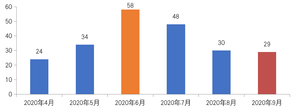 2020年至今,全國土地市場(chǎng)走勢(shì)曲折。一季度,因新冠肺炎爆發(fā)、多城中止或延后,土地流拍現(xiàn)象較2019年明顯加劇,合肥、長沙等中西部二線城市,成為流拍的“重災(zāi)區(qū)”。二季度,在北京、上海、福州等熱點(diǎn)城市優(yōu)質(zhì)土地帶動(dòng)下,土地市場(chǎng)熱度提升,溢價(jià)率明顯上揚(yáng)。進(jìn)入三季度,受熱點(diǎn)城市調(diào)控政策收緊、供地結(jié)構(gòu)改變、“三條紅線”融資新政的多重影響,土地市場(chǎng)熱度明顯下降,溢價(jià)率已經(jīng)降至二季度以來新低, 8、9兩月超百輪競(jìng)拍的高熱地塊數(shù)量較6月均已經(jīng)腰斬,“秋涼”已現(xiàn)。