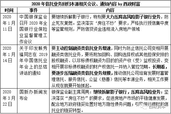 2. 持續整治影子銀行亂象,要堅決清理非標資金池,持續壓縮具有影子銀行特征的信托融資業務,制定融資類信托壓縮計劃;