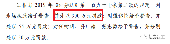 根據wind披露的公開信息,中國證監會于2021年4月20日分別向華晨汽車集團控股有限公司和永城煤電控股集團有限公司下發了《行政處罰事先告知書》(處罰字[2021]24 號)、處罰字[2021]25 號)),分別給予兩家公司罰款5630萬元和300萬元!