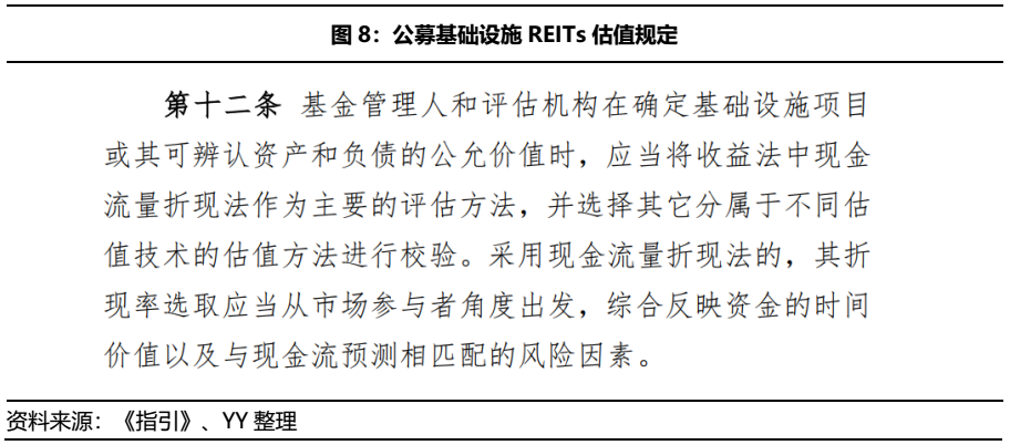 且從投資端來看,可能會存在以下幾個問題:首先,REITs雖然可上市交易,但在流動性不足的情況下,基礎設施REITs的交易價格可能波動較大。而作為有穩定分紅預期的品種,險資、銀行理財等機構投資者希望其有一定的固收屬性,過大的估值波動會擾動其投資意愿;其次,根據規定資產評估機構對基礎設施項目每年至少進行1次評估,更新REITs凈值,這樣也會造成估值上的較大偏差;最后,公募基礎設施REITs的底層資產包含很多特許經營權資產,按照現金流量折現法,其資產價值肯定會隨特許經營權的到期而降低,投資者心理預期仍有待建設。