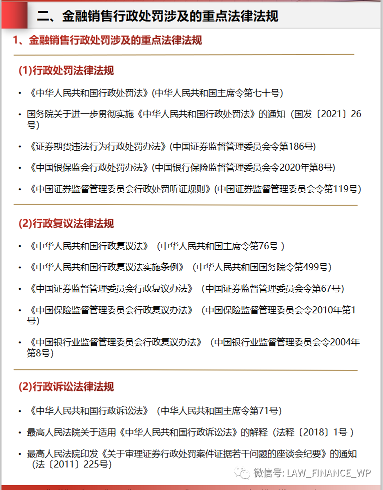 近年來,隨著高壓監管態勢的不斷推進,金融銷售領域罰單層不出窮。金融銷售行政處罰來自兩個方面:其一是相關方投訴舉報后,監管機構進行調查核實,發現違法行為給予行政處罰;其二是監管機構例行定期或不定期檢查過程發現機構違法行為后給予行政處罰。行政處罰的救濟途徑包括檢查期間溝通、聽證程序、行政復議及行政訴訟,每個階段有各種特點,進而也有對應的溝通技巧。本次研究報告的內容如下: