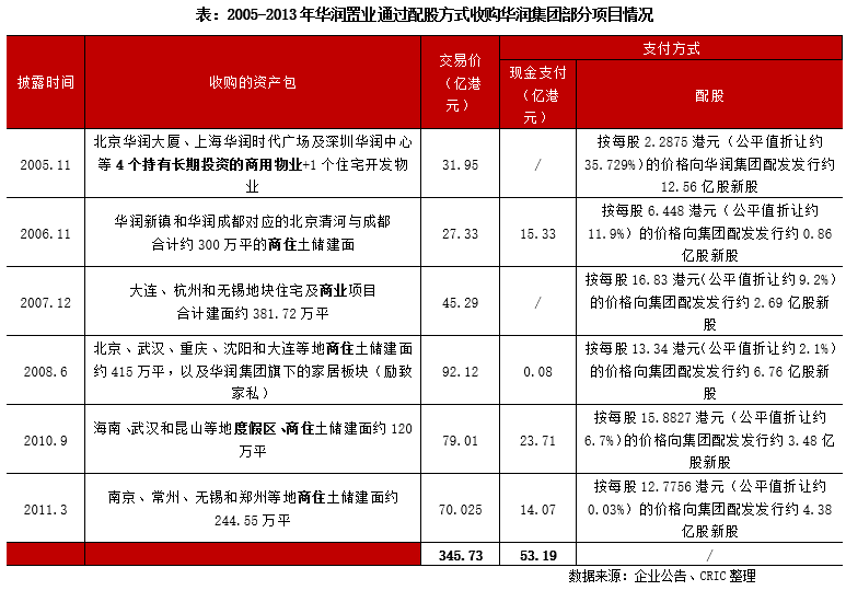 除并購貸款和并購票據(jù)以外,股權(quán)融資也成為房企并購交易資金的重要來源。并購方通過定增配股等股權(quán)融資方式支付標(biāo)的資產(chǎn)原股東的交易對價,多見于同一集團(tuán)的關(guān)聯(lián)方。如2016年3月中海收購中信地產(chǎn)約2400萬平的土地儲備,收購交易價310億元,其中的297億港元(折合人民幣約249億元)是中海向中信按每股27.13港元的價格發(fā)行10.96億股新股構(gòu)成。早年間,華潤置業(yè)亦通過“配股+現(xiàn)金”方式收購母公司資產(chǎn),緩解較大并購資金壓力。而集團(tuán)股權(quán)融資支付對價,從過去案例來看多見于同一關(guān)聯(lián)方,并不具備普遍性。