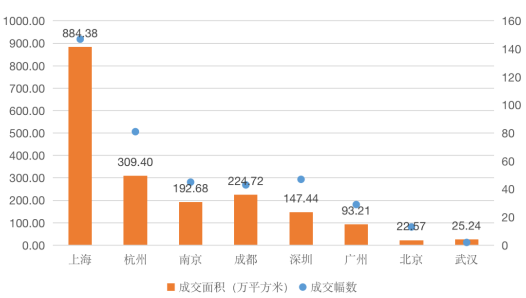 從成交情況來看,10月,重點(diǎn)22城中武漢、上海、杭州、北京、長沙五個(gè)城市完成第二批次集中供地,共成交租賃土地62幅,以拿地配建方式為主,總建筑面積累計(jì)約113.25萬方,值得一提的是,上海10月出讓租賃用地宗數(shù)和建面居五城之首,共成交租賃用地26宗,成交建面55.56萬平方米。克而瑞租售重點(diǎn)監(jiān)測的核心8城中,上海、杭州、北京、武漢4城成交租賃地塊58幅。