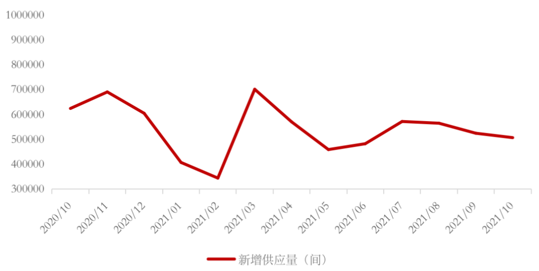 圖:2020年10月-2021年10月全國55城個(gè)人房源新增供應(yīng)