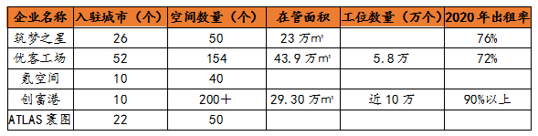 數據顯示,創富港2021年上半年的實際收入超過3.11億元;2021年上半年優客工場總營業收入5億元;2020年筑夢空間營收為3465萬美元,約為2.4億人民幣。