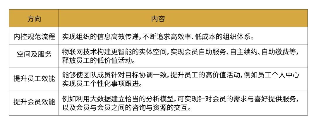 在一份內部資料中,創富港強調其科技賦能聚焦于四個價值方向:內控流程規范、空間及服務、提升員工效能、提升會員效能。