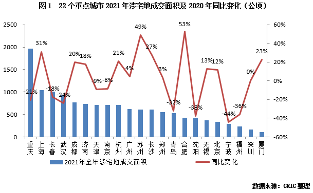01 重點城市全年宅地成交規模同比下降5% 上海、蘇州同比漲幅超30%