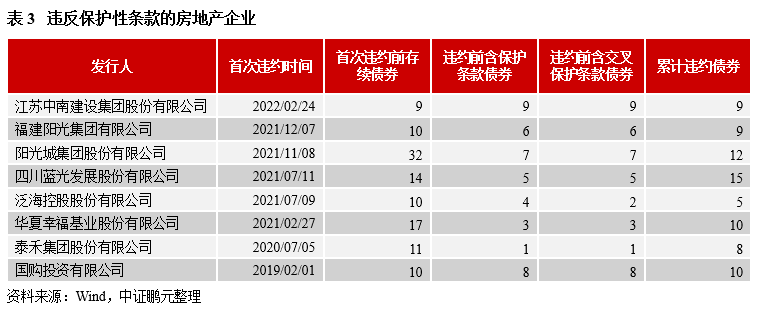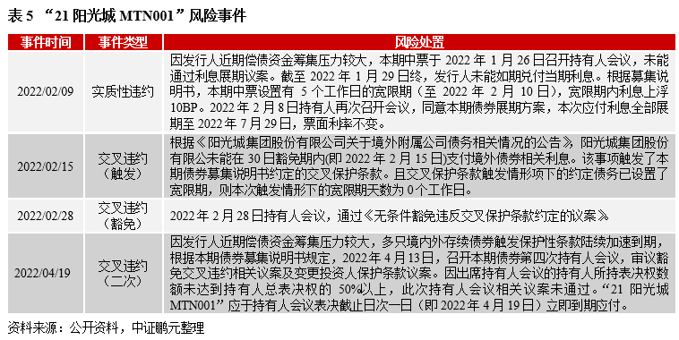 2021年11月,陽光城集團的境內外債務先后出現未能如期兌付的情形,彼時,公司存續債券約32只,其中含有保護性條款的有7只,均含有交叉保護條款。隨著公司在寬限期內未能對違約觸發事件作出糾正,7只債券于2022年2月15日觸發交叉保護條款,但不同債券的處置結果存在差異,與持有人結構有關。