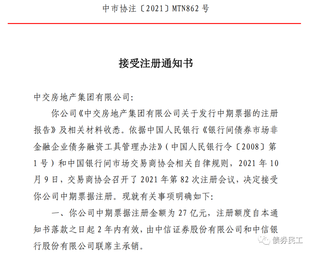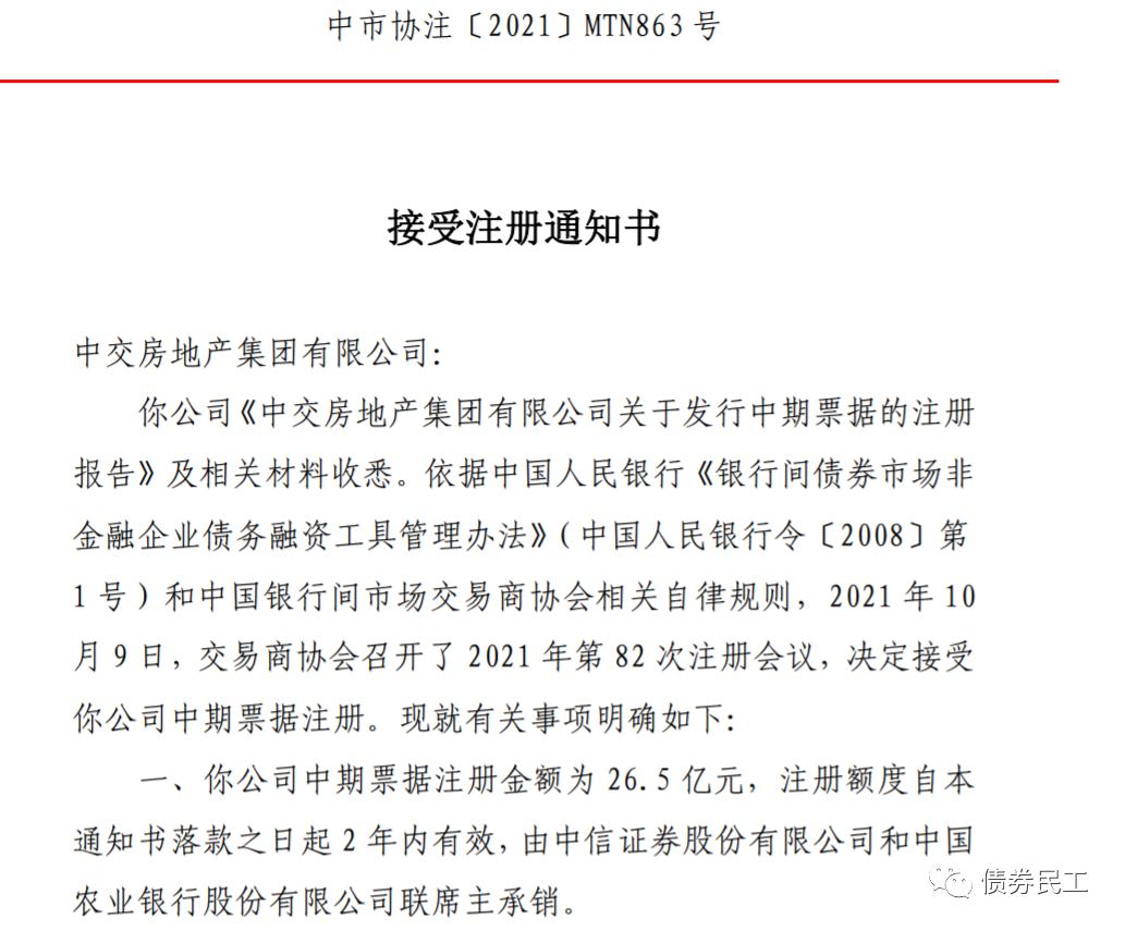 中交房地產(chǎn)集團有限公司和杭州濱江房產(chǎn)集團股份有限公司三家房地產(chǎn)公司總金額合計為135.60億元債務融資工具產(chǎn)品的注冊,具體債務融資工具產(chǎn)品注冊情況如下