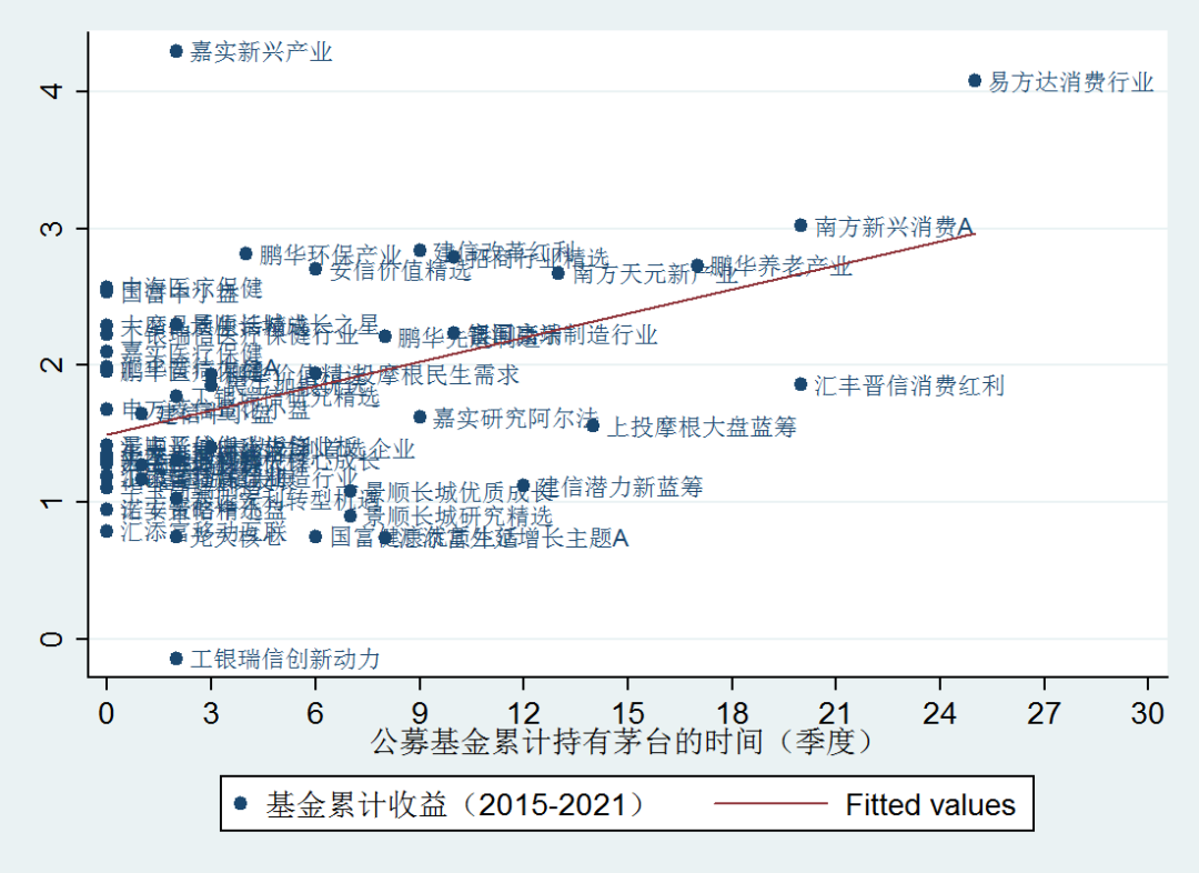 圖3 公募股票基金“含茅率”與基金業(yè)績的回歸分析