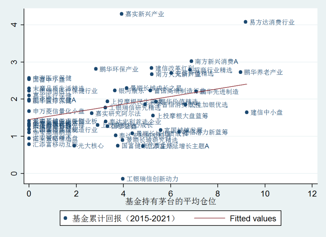 圖2 股票基金持有茅臺的平均倉位與基金業(yè)績