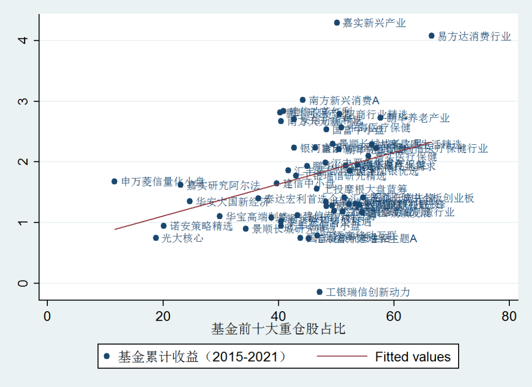 圖3 股票基金前十大重倉股占比與基金業(yè)績