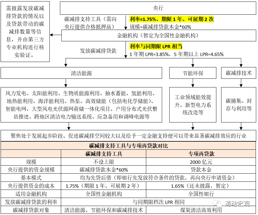 (1)央行提供資金的成本不同,碳減排支持工具與專項再貸款的利率分別為1.75%和1.65%(還未披露、暫定)。