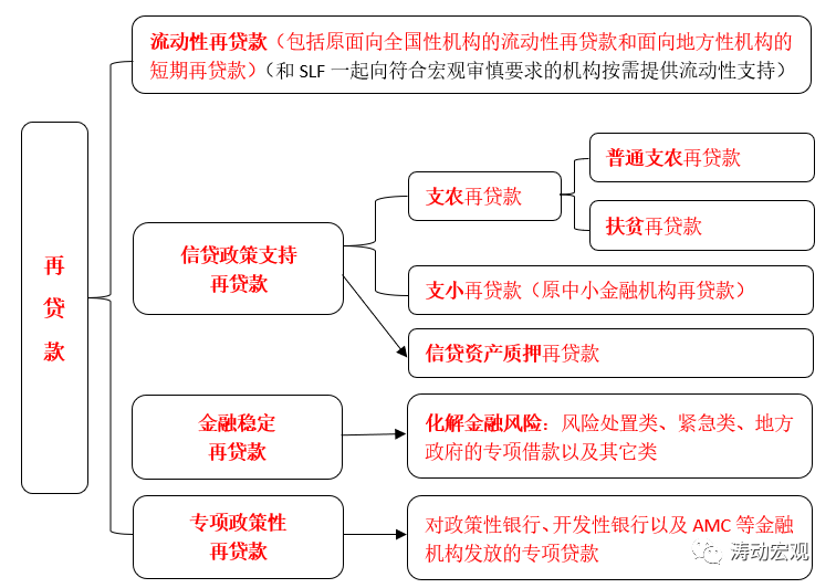 (2)細分后的流動性再貸款包括之前人總行向全國性存款類金融機構發放的流動性再貸款和人行分支機構向地方性存款類法人機構提供的短期再貸款。