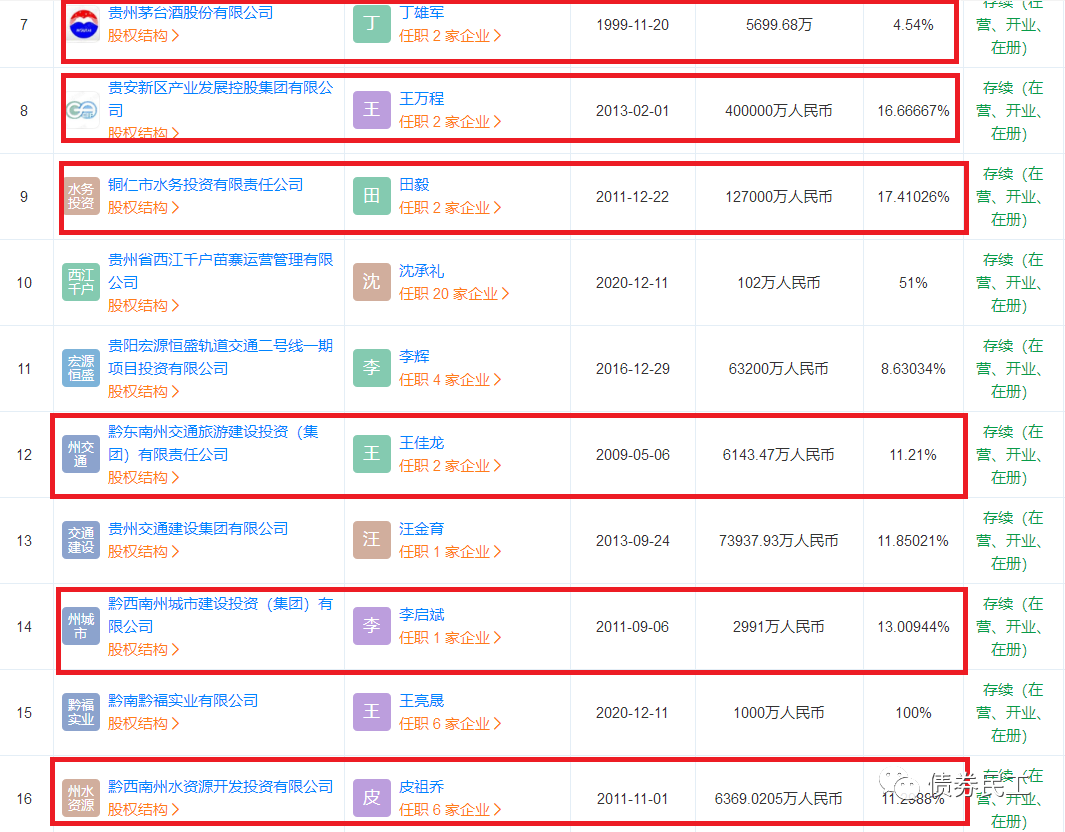 4、2021年12月27日,貴州國資公司成為黔西南州水資源開發投資有限公司(實際控制人黔西南州國資委)持股比例為11.2988%的股東。