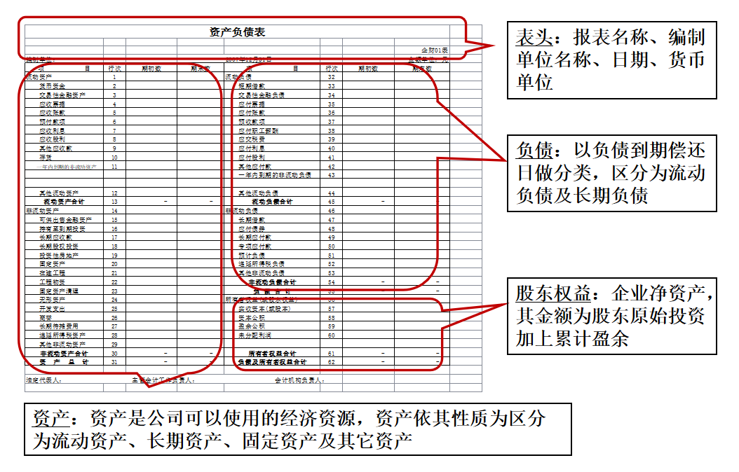 三張財務報表中,資產負債表是核心,其他幾張表都是對資產負債表某個項目的解釋和說明。今天我們先講資產負債表。